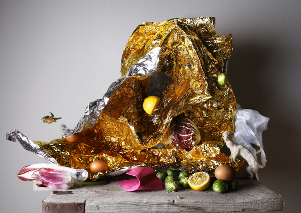 These Banquet still life series were created by conflicting feelings of melancholy and abundant energy. The process reminds me of how I used to craft in my girls room when I was little. Making monkeys hung on a transparent string in a jar. And then going to my mother and telling her, look mom the monkey floats!